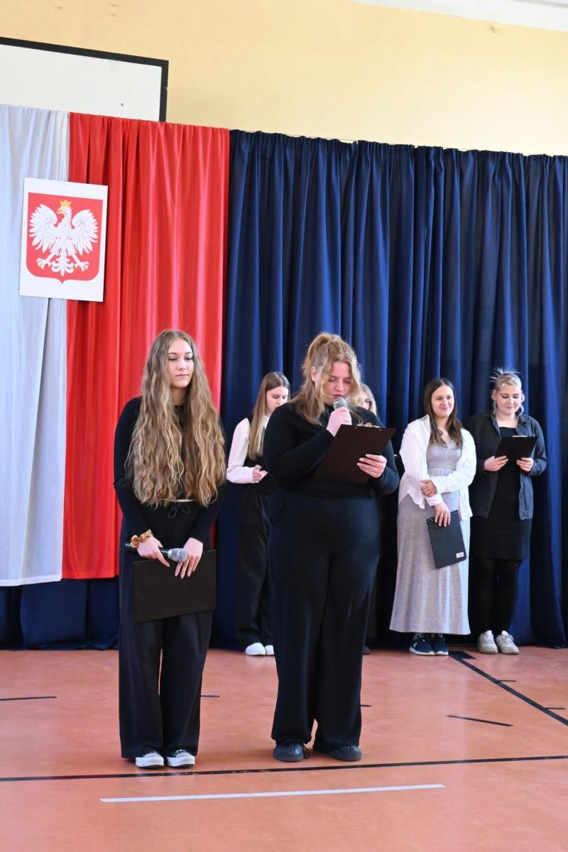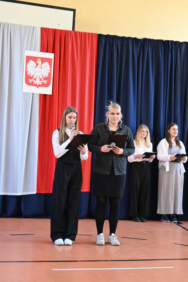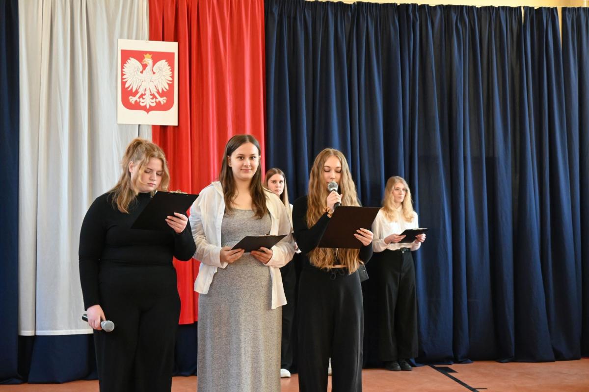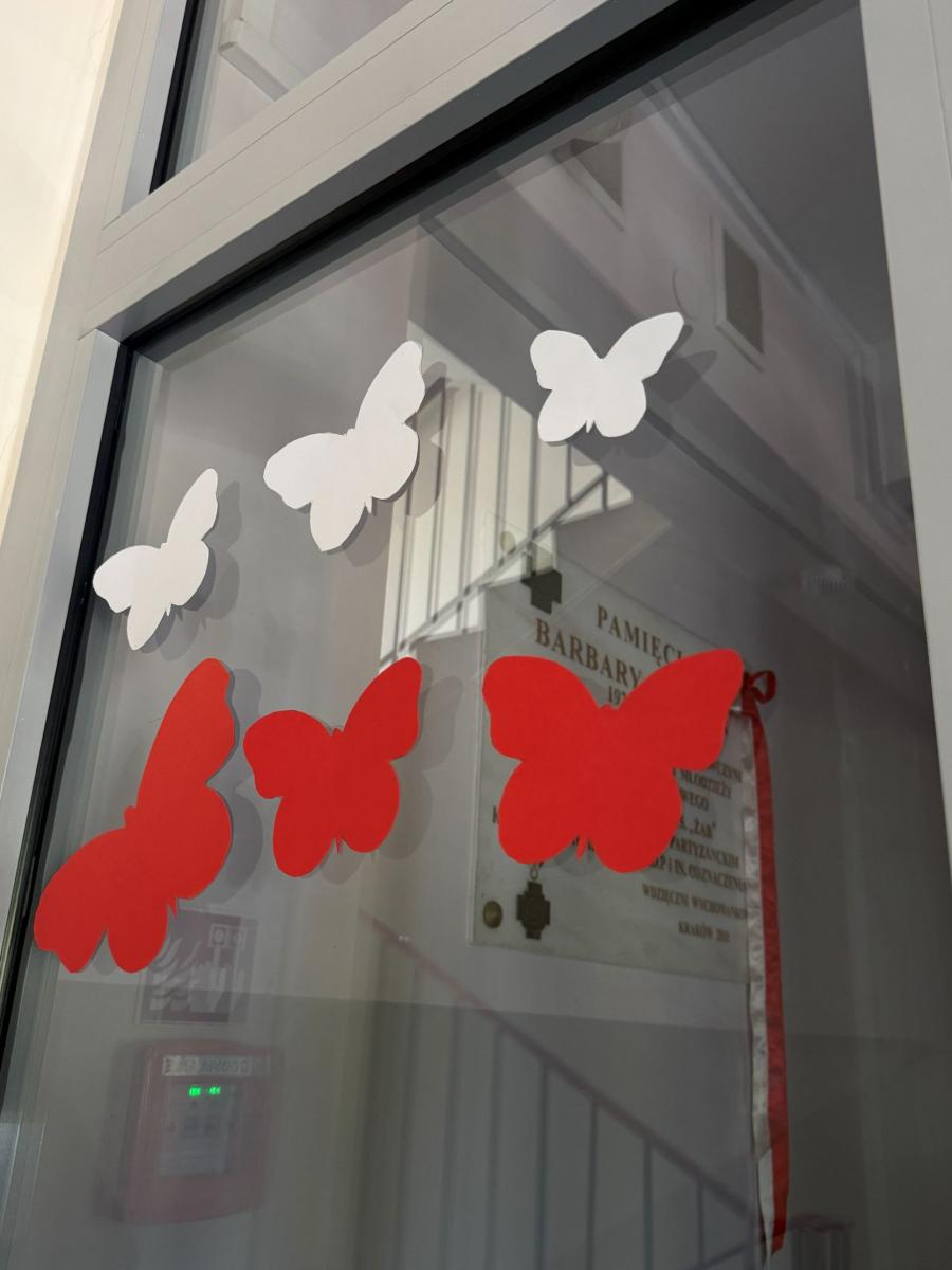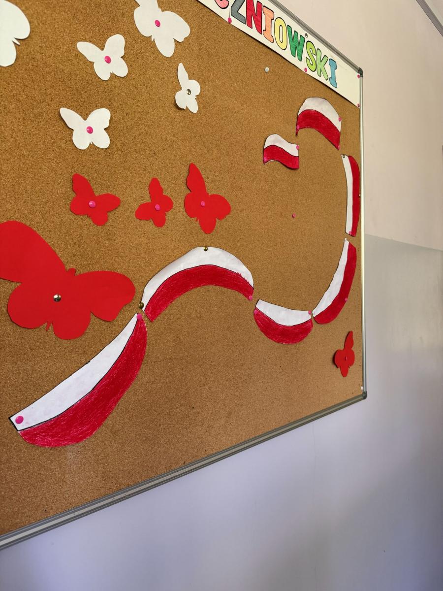 Uroczystą atmosferę nadchodzących świąt dopełniały dekoracje w barwach biało-czerwonych rozmieszczone w całej szkole.