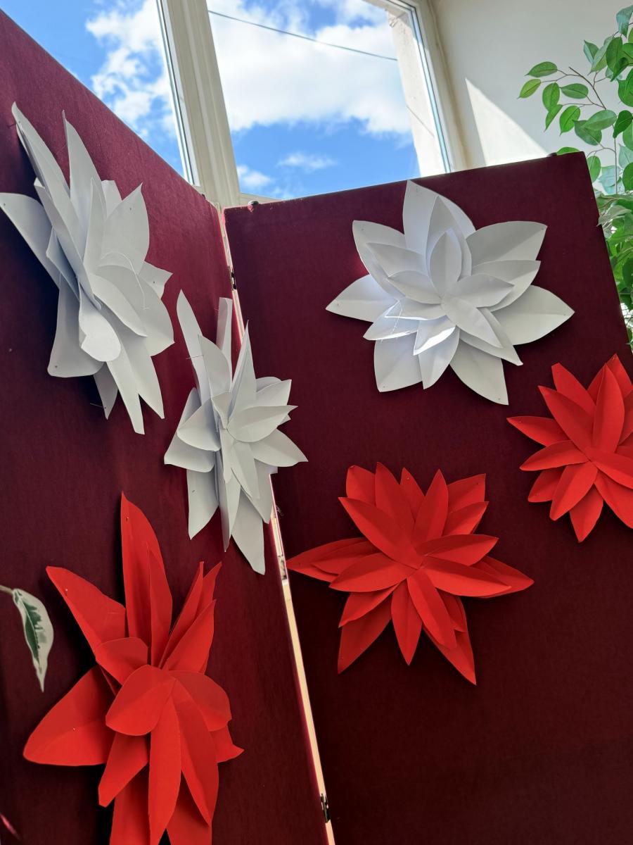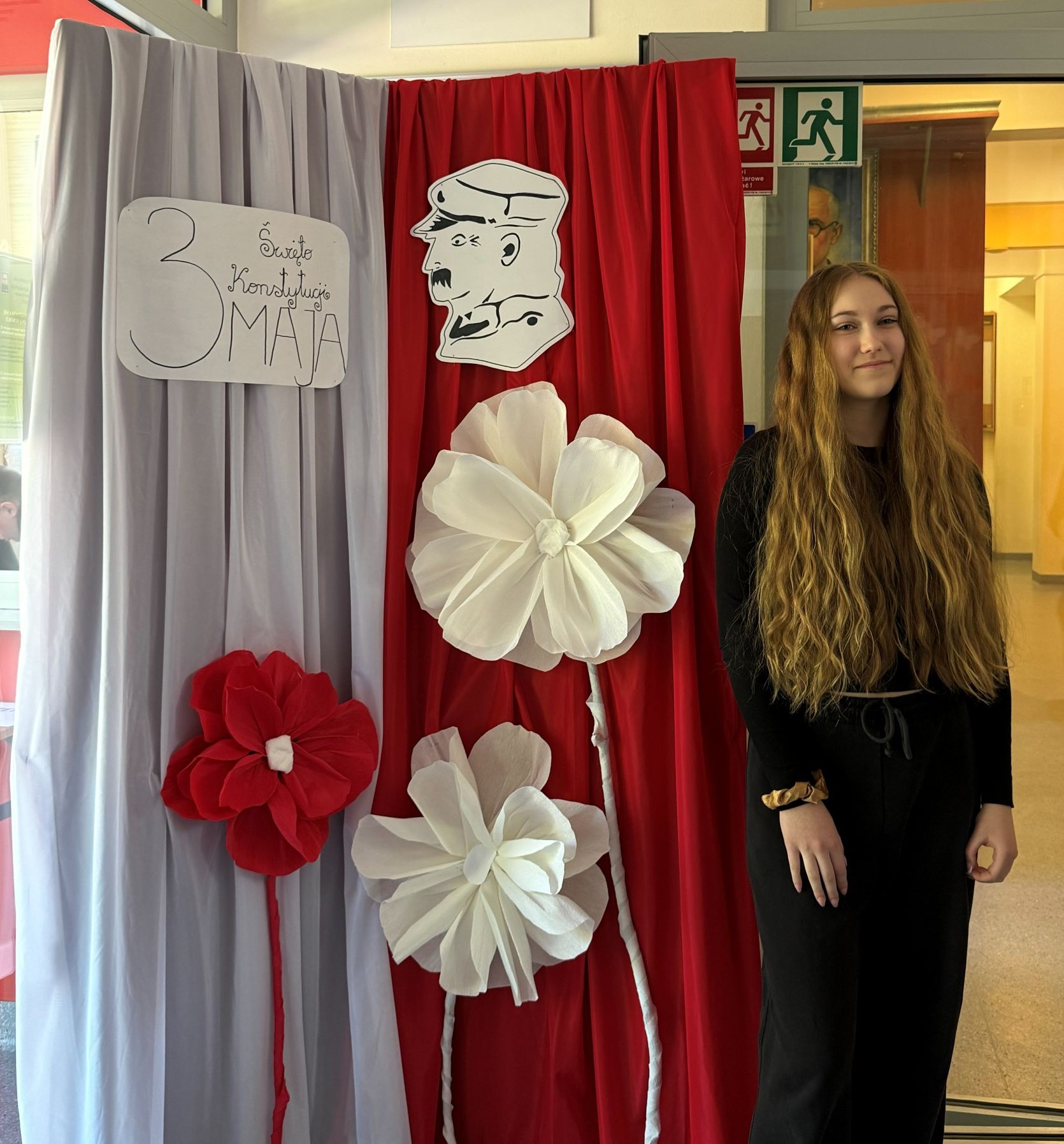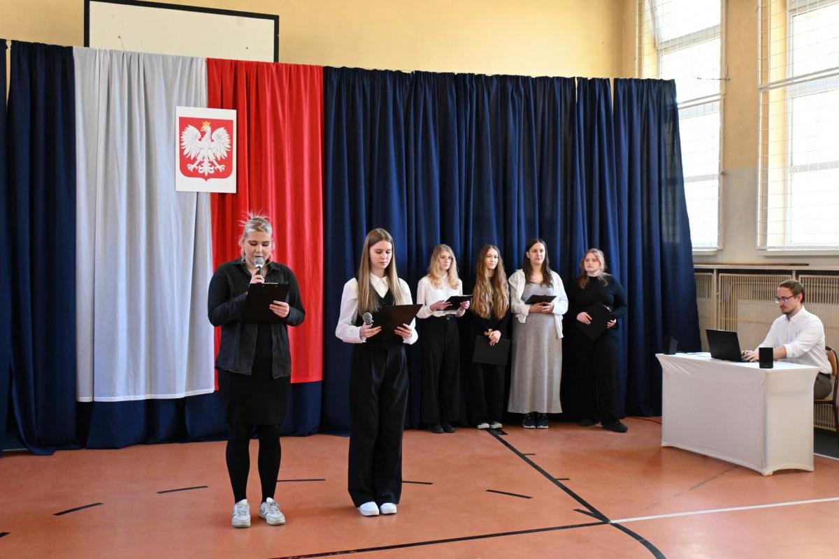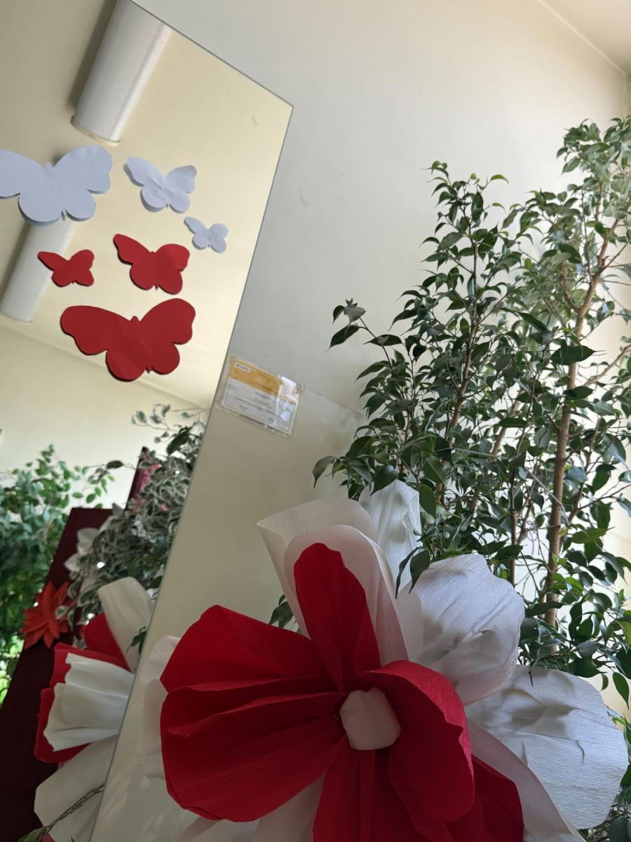 Uroczystą atmosferę nadchodzących świąt dopełniały dekoracje w barwach biało-czerwonych rozmieszczone w całej szkole.